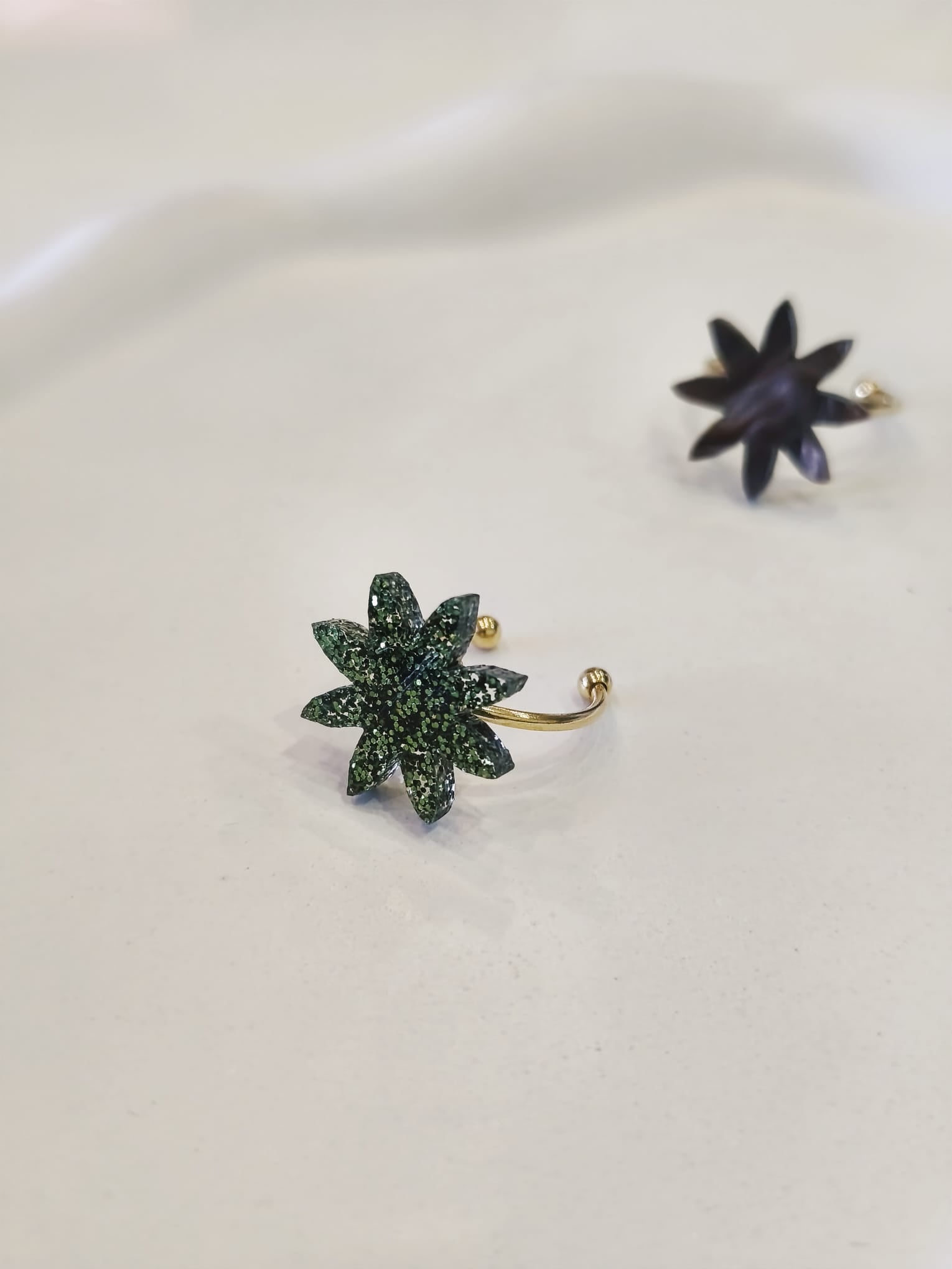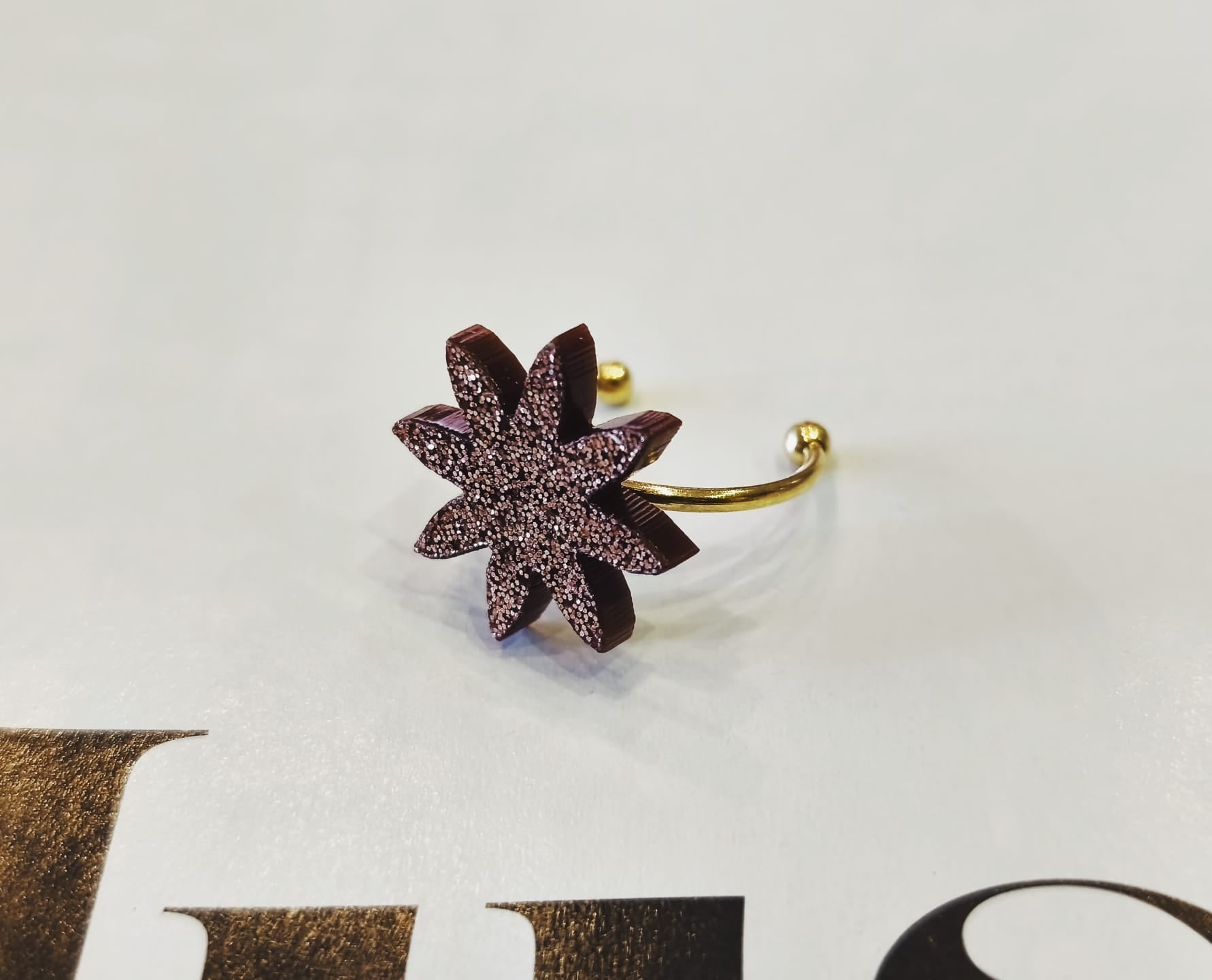 Cada anillo está realizado en metacrilato de alta calidad, con acabados brillantes, irisados o efecto glitter, y montado sobre una base ajustable, cómoda y versátil, que se adapta fácilmente a diferentes tamaños de dedo.